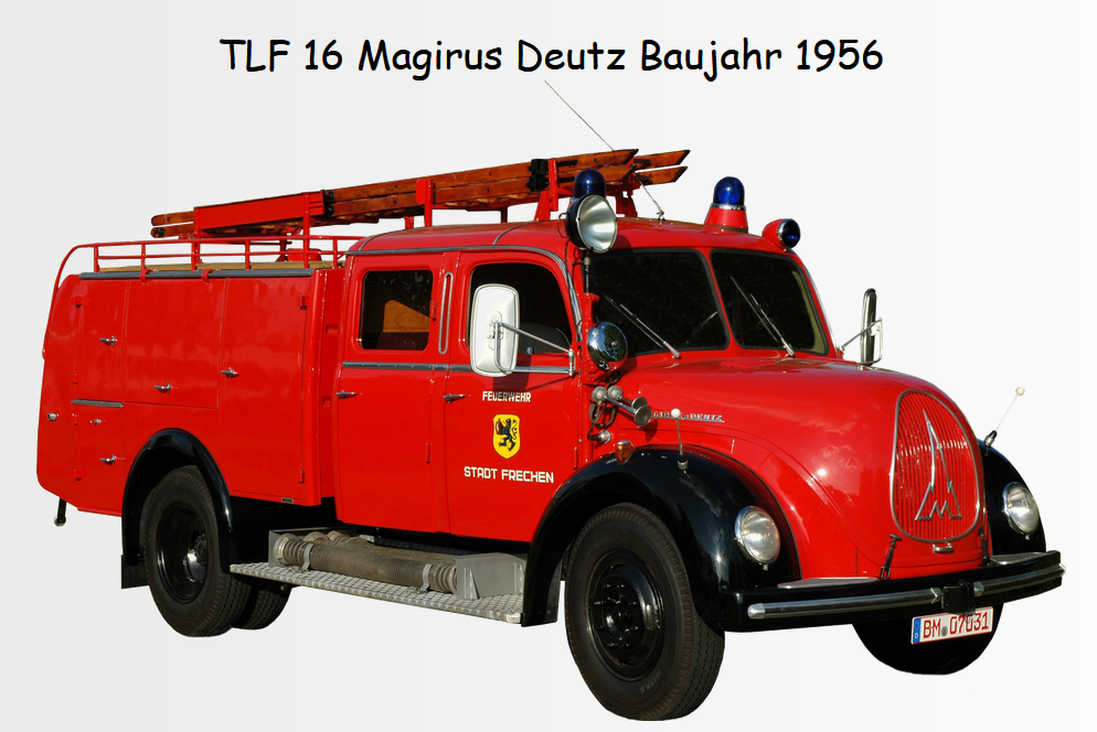 1956 beschaffte die Stadt Frechen für Ihre Freiwillige Feuerwehr ein neues Tanklöschfahrzeug des Herstellers Magirus, Typ TLF 16. Sechs Jahre später folgte eine neue Drehleiter, auch ein Magirusfahrzeug, Typ DL30. Beide Fahrzeuge waren noch bis weit in die 1980-er Jahre im Einsatzdienst. Das TLF 16 war in den letzten Jahren im Löschzug Habbelrath stationiert.