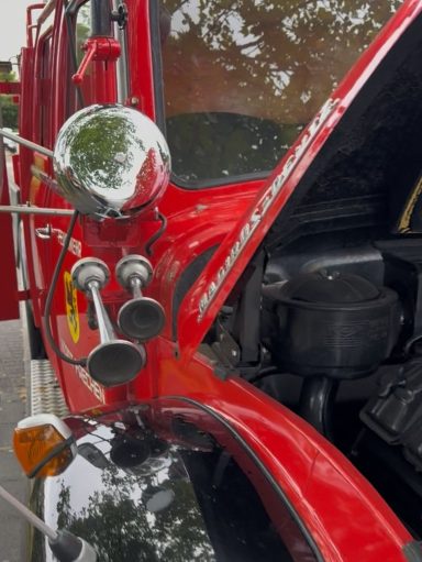 Wenige Jahre später übergaben die Feuerwehrleute des Löschzuges Frechen auch ihre Drehleiter in die Obhut des Löschzuges Habbelrath. Und wieder wurde alles darangesetzt, auch dieses Fahrzeug in einen vollfunktionstüchtigen Zustand zu versetzen und seine Substanz zu restaurieren.